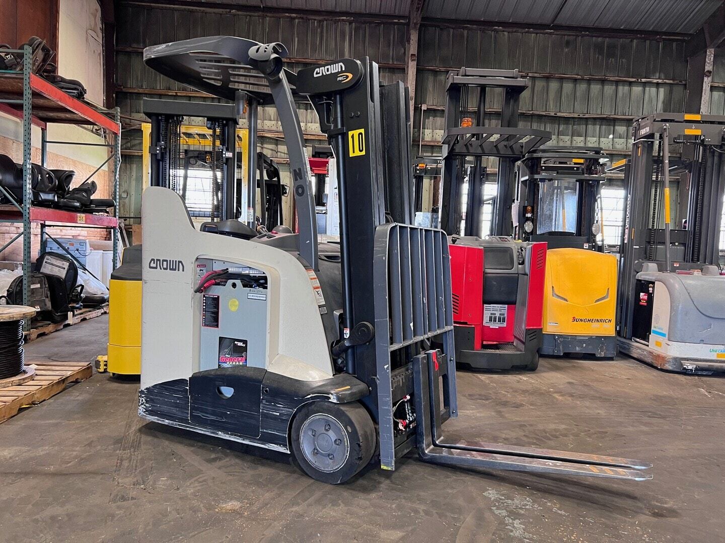 This is the reason most equipment suppliers emphasize reliability and toughness in their machines because it is less likely to put you in a bind. Crown RD522030 reach truck. This includes Forklift Sales Leasing Rentals.